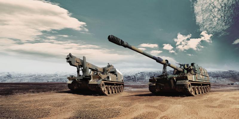 탄약운반차 K10(왼쪽)과 K9 자주포(사진=한화 제공)