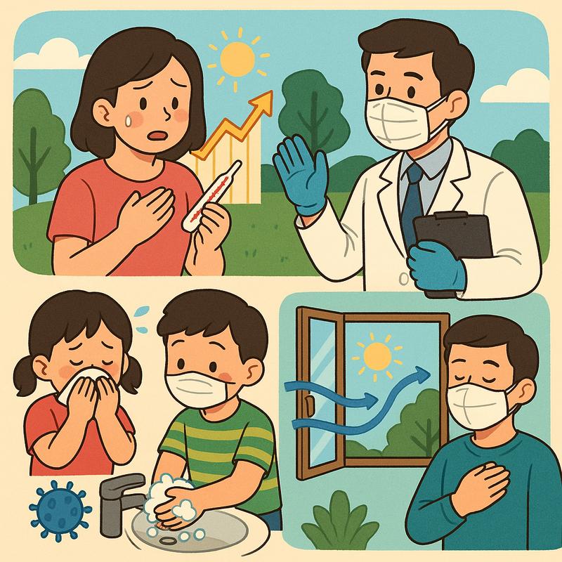 한편, 질병청은 예방 포스터를 통해 다섯 가지 호흡기 감염병 예방수칙을 강조하고 있다. 해당 포스터(9쪽 이미지)에서는 기침예절, 손씻기, 눈·코·입 만지지 않기, 실내 환기, 증상 시 의료기관 방문 등을 핵심 수칙으로 안내하고 있다.