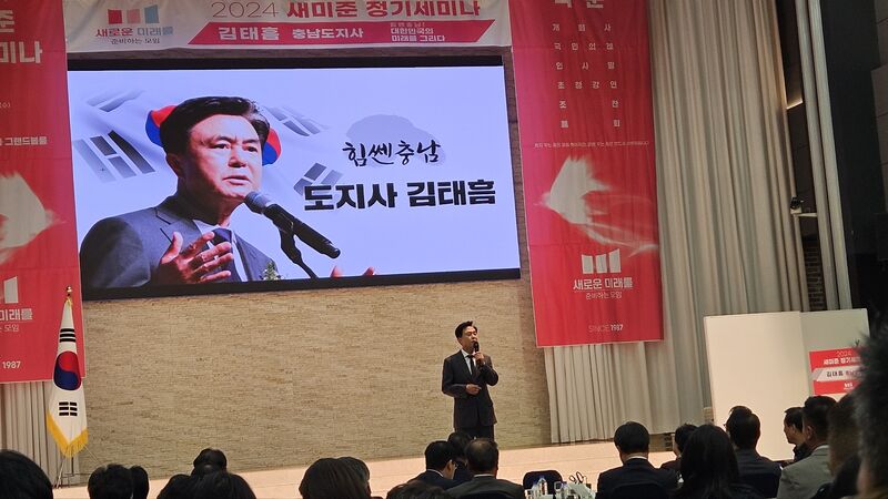 2024년 10월 23일, 서울 영등포구 공군호텔에서 포럼새미준(회장 이영수) 주최로 정기세미나가 열렸다. 이번 세미나의 주제는 "힘 센 충남! 대한민국의 미래를 그리다"로, 충청남도지사 김태흠이 초청 강사로 나서 대한민국의 미래 비전을 제시했다.