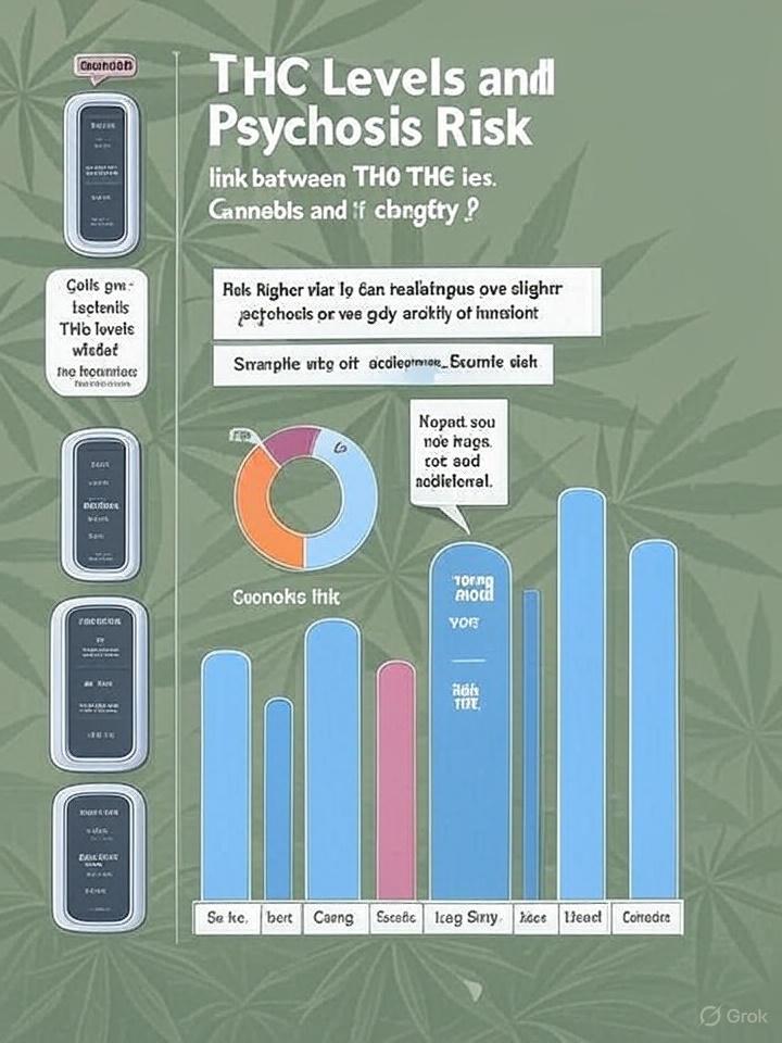 인포그래픽=기사 내용의 이해를 돕기 위해 AI로 생성한 것입니다.새로운 연구에서 칸나비스 제품의 THC(테트라하이드로칸나비놀) 농도가 최근 몇 년간 급증하면서 정신증 위험이 높아지고 있음이 밝혀졌다. 특히 젊은 층과 빈번한 사용자에게 이 위험이 두드러지게 나타나며, 공중 보건에 대한 우려가 커지고 있다.