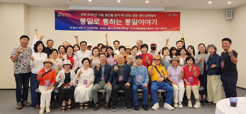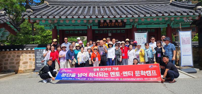 민주평화통일자문회의 천안시협의회(회장 안상국)는 8월 14일(목)부터 15일(금)까지 북한이탈주민과 자문위원, 관계자 등 45명이 참여한 가운데 ‘광복 80주년 기념, 분단을 넘어 하나 되는 멘토·멘티 문학캠프’를 개최하며 통일을 준비하는 소중한 자리를 마련했다.