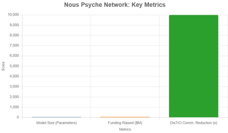 Psyche 네트워크는 Nous Research의 핵심 기술인 DisTrO(Distributed Training Over-The-Internet)를 기반으로 한다. DisTrO는 GPU 간 통신을 1,000배에서 10,000배까지 줄이는 최적화 기술로, 느린 인터넷 연결이나 이기종 하드웨어 환경에서도 안정적인 훈련을 가능하게 한다. 이 기술은 압축 알고리즘(DCT + 1-bit 인코딩)과 비동기 훈련, 노드 드롭아웃 지원 등을 통해 컴퓨팅 비용을 획기적으로 낮춘다. Nous Research는 이를 통해 "AI 개발을 민주화"하겠다는 비전을 제시하며, 개인 개발자나 소규모 커뮤니티가 대형 모델을 만들 수 있는 환경을 조성한다고 강조했다.