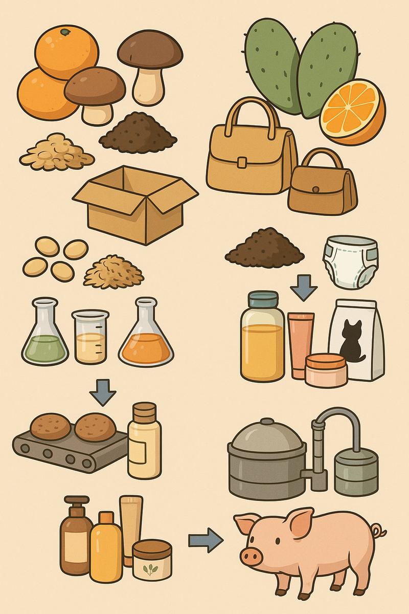 이번에 승인된 과제에는 버섯 폐배지를 활용한 친환경 포장재와 완충재 개발, 선인장 잎과 감귤박을 활용한 식물성 가죽 생산, 대두박과 왕겨를 활용한 신소재 개발, 커피박으로 만드는 고양이 모래 생산 등이 포함됐다. 또한 맥주박과 쌀겨를 업사이클링한 화장품 원료 생산, 배박과 감귤박을 활용한 고기능성 원료 추출, 도축잔재물을 활용한 바이오가스 생산량 확대도 추진된다.