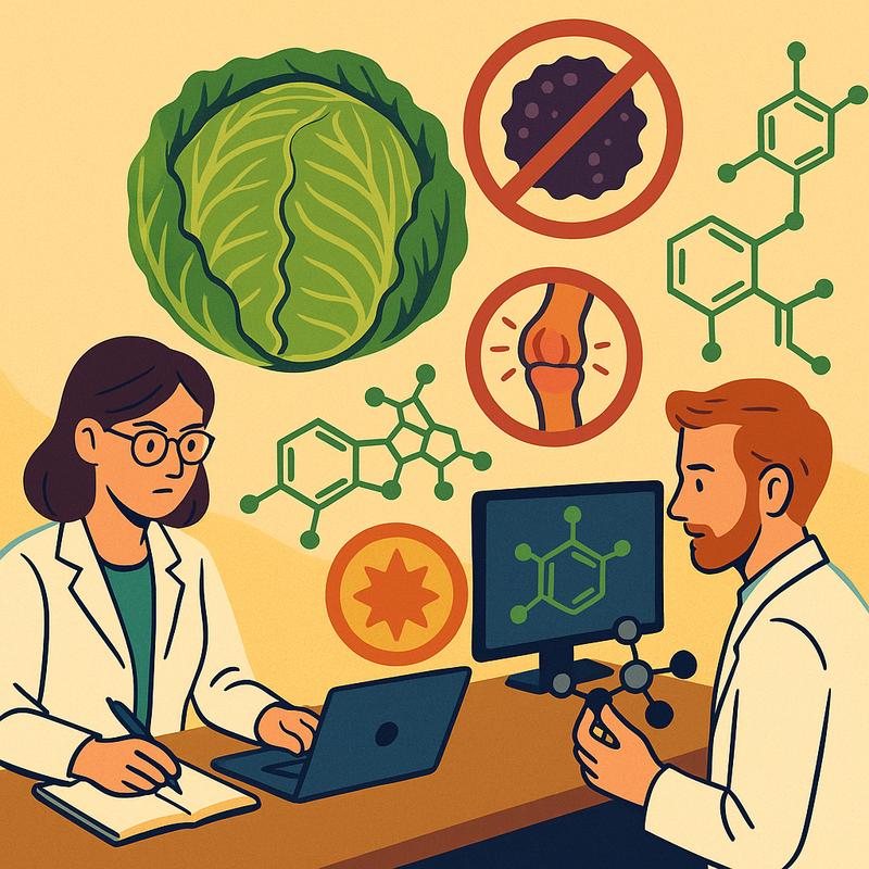 또한 연구진은 분자 도킹(Molecular Docking) 기법을 이용해 배추 속 글루코시놀레이트 성분이 암세포 성장과 염증 반응, 약물 대사에 관여하는 단백질(CDK2, MPO, CP450 등)과 높은 결합 친화도를 가진다는 사실을 규명했다.