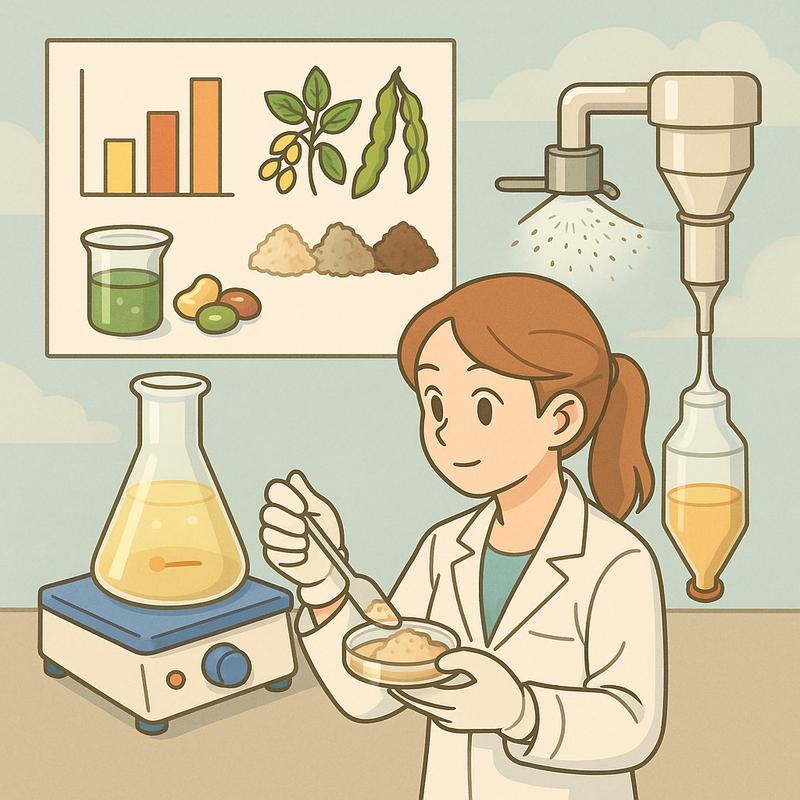 이번 연구는 최근 대체 단백질 식품 수요가 증가하는 가운데, 식물성 재료를 이용한 대체 식품의 품질을 높이기 위한 것이다. 연구진은 약알칼리(pH 9) 조건에서 단백질을 추출한 후 동결건조 또는 분무건조를 적용해 단백질의 용해도와 거품 형성, 유화 활성 등을 향상시켰다.