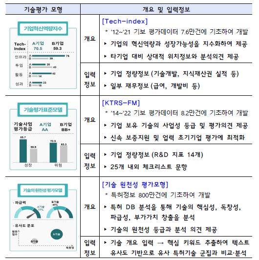 | Tech-Index | 기업의 혁신역량과 성장 가능성을 평가하여 지수화함 | 기업의 재무, 기술개발 실적 등 | 기업 혁신성장 역량 지수화 |