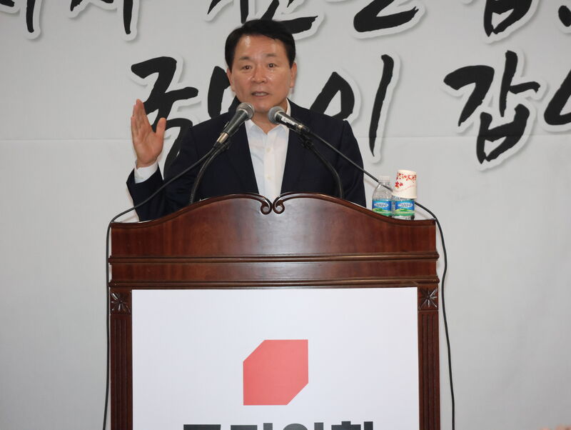 김태흠 충남도지사는 “다가오는 지방선거는 무너지는 나라를 다시 세우는 역사적 사명”이라고 말했다.