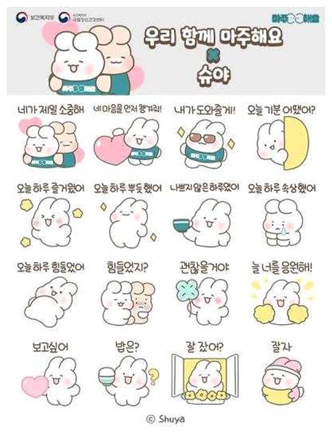 보건복지부 국립정신건강센터는 11월 18일 오후 2시부터 카카오톡 이모티콘 "우리 함께 마주해요"를 선착순 2만 5000명에게 무료로 배포한다고 밝혔다. 이번 이모티콘은 정신건강 인식개선 브랜드 "마주해요"의 홍보 활동의 일환으로 기획되었으며, 일상 속에서 마음 건강을 쉽게 관리할 수 있도록 돕는 메시지를 담고 있다.